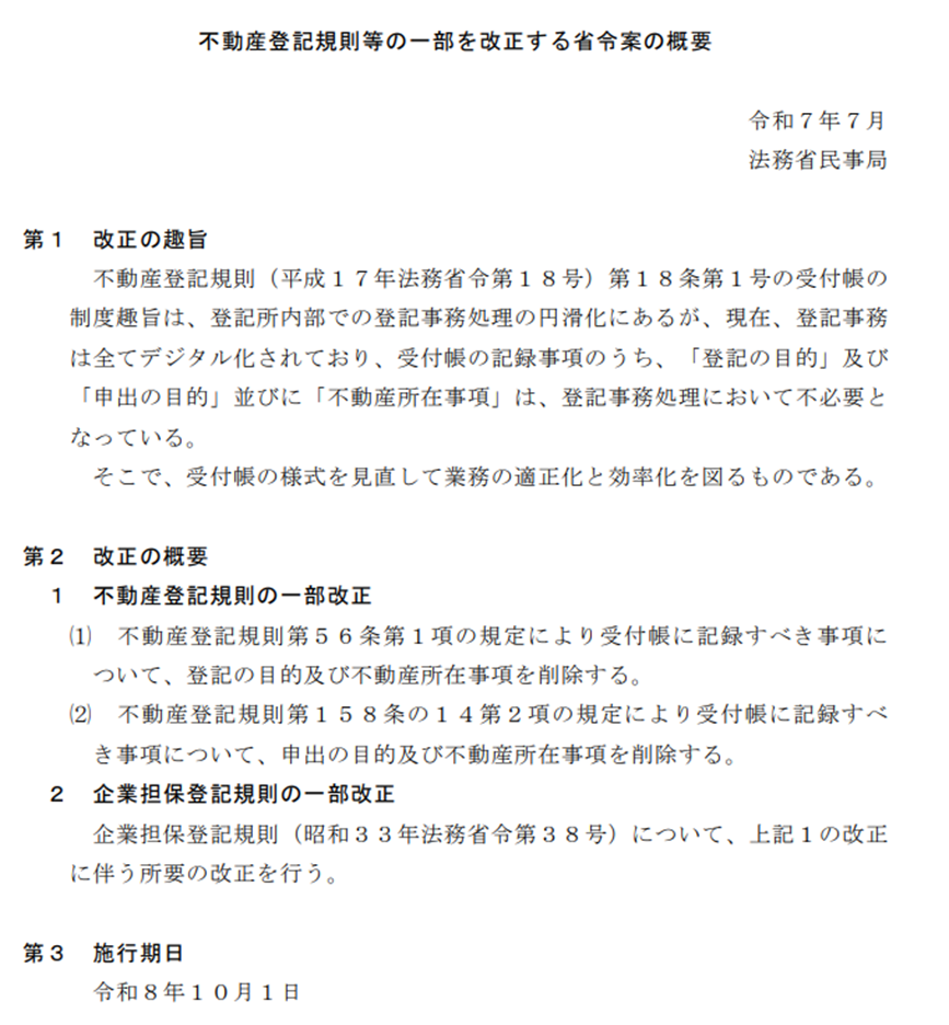 法務省の発表によると、2026年10月1日から不動産登記の受付帳の一部情報が非開示になります。
